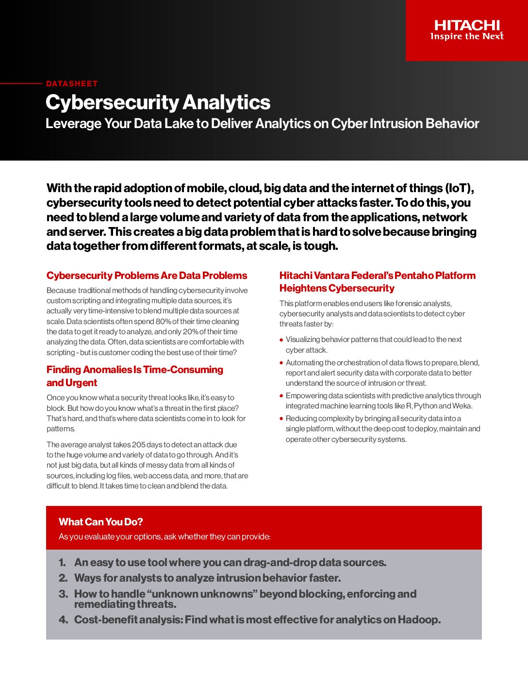 Leverage your data lake to deliver analytics on cyber intrusion behavior, powered by Pentaho.