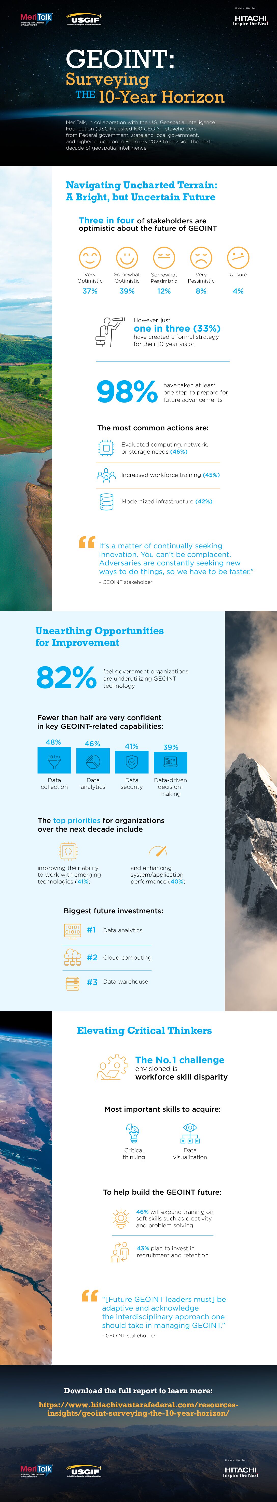 Download this infographic and get a first-hand look at the challenges, investments, and outlooks experienced by GEOINT stakeholders across the federal government and beyond.
