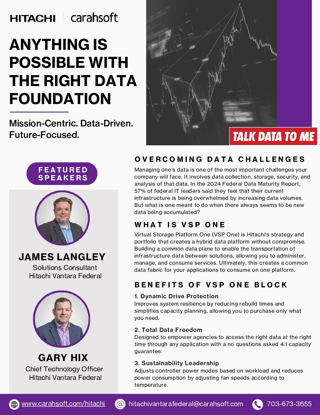 The Right Data Foundation Summary outlines how Hitachi Vantara Federal’s Virtual Storage Platform One (VSP One) enables federal agencies to overcome data challenges through a hybrid data platform. VSP One ensures seamless data management, improved system resilience, and sustainability while offering flexible data services across applications. With dynamic drive protection, total data freedom, and optimized power consumption, VSP One helps organizations handle increasing data volumes efficiently. Download this summary to discover how a robust data foundation can drive mission success. View the full webinar: here.