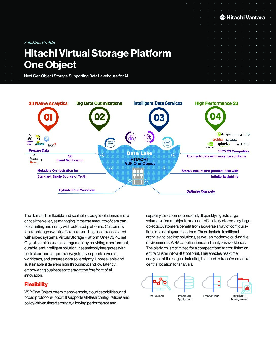 Take on any unstructured data use case with flexible, scale-out object storage. Harness the power of our hybrid object storage architecture to seamlessly bridge private and public cloud, optimize costs, transform data into intelligence and accelerate innovation. Get the solution profile to learn more.