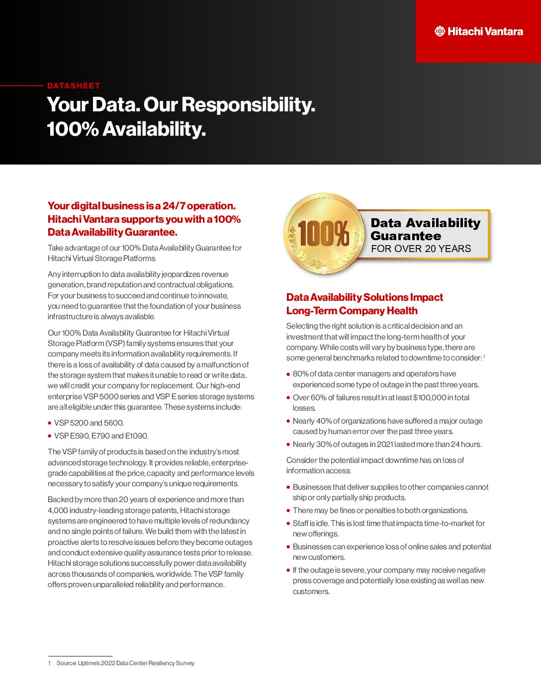 Your mission-critical operations are 24/7. Hitachi Vantara Federal supports you with a 100% Data Availability Guarantee.